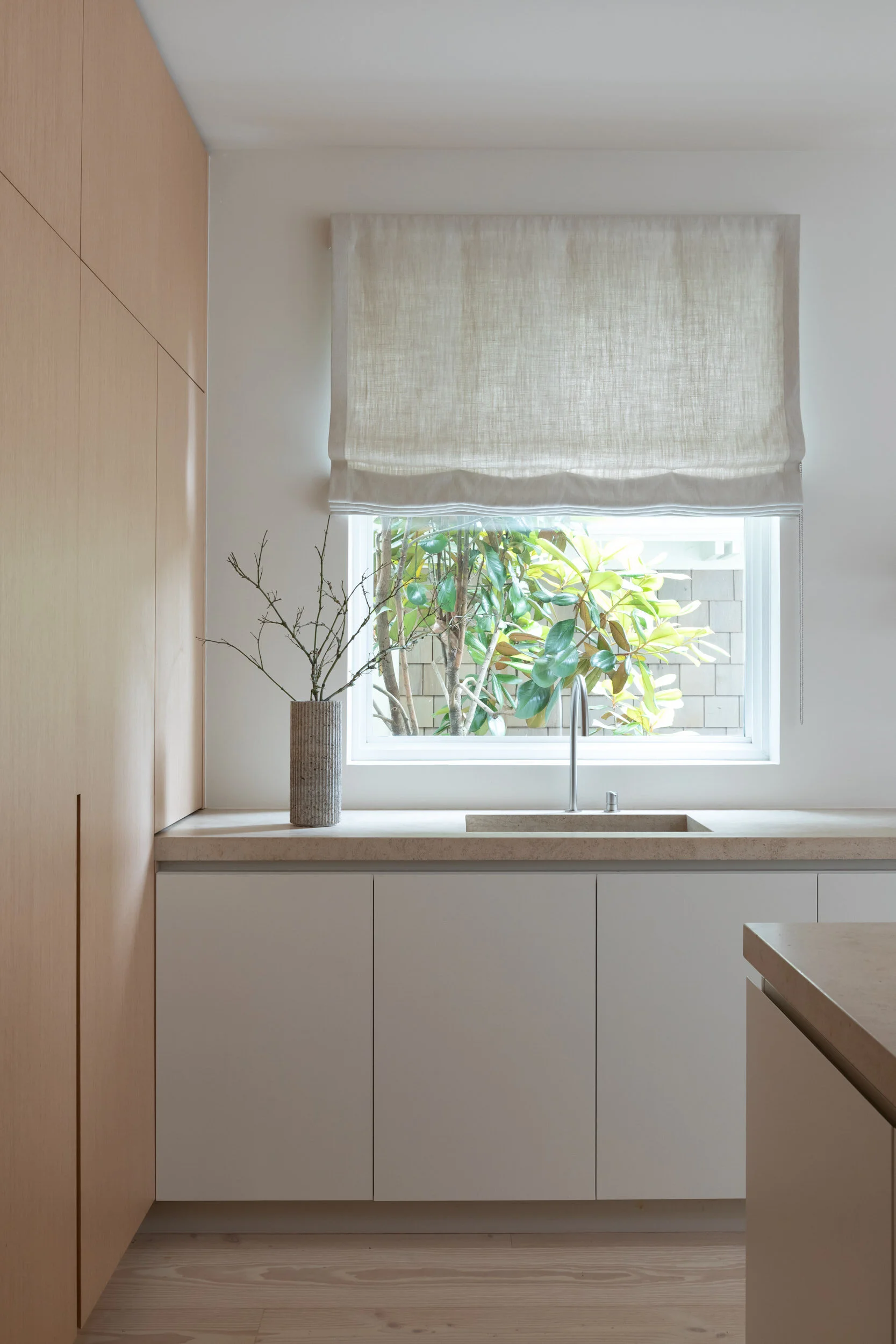 The color and material palette was a practice of restraint; unifying materials were carried through the house. Traditional materials such as the limestone counters and fireplace hearth, the fir wood floors, and oak millwork — all stayed true to form. Materials were purposefully unadorned and allowed to patina over time. It was a contemplated effort to forego typical modern-engineered materials, to balance the bones of a character home, and the minimalism of the modern design.