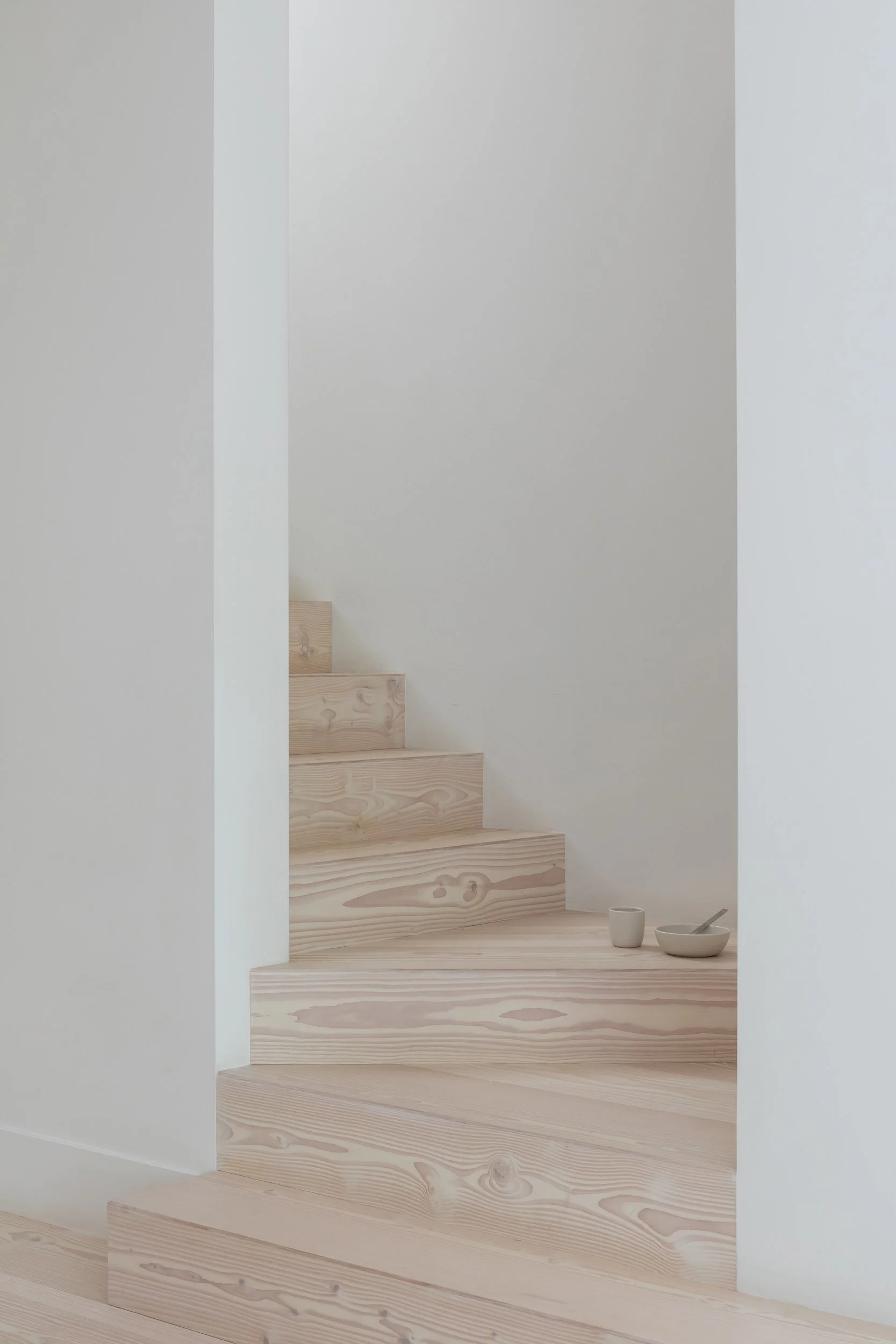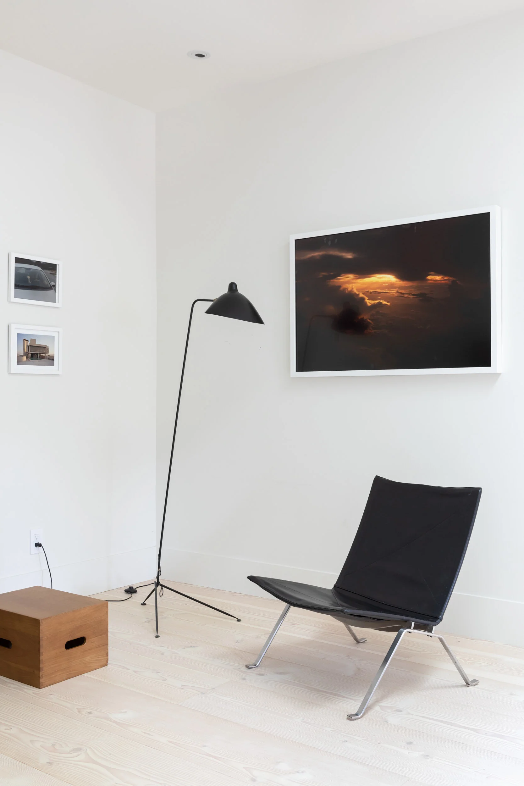 Conducive to an old-world material palette, several pieces of vintage furniture collected by Bergman are found throughout the house. Collectible pieces include items by Nakashima, Hans Wegner, Charlotte Perriand, Poul Kjaerholm, Jorgen Kastholm, Preben Fabricius, Norman Cherner, Jasper Morrison, Serge Mouille, and Isamu Noguchi.