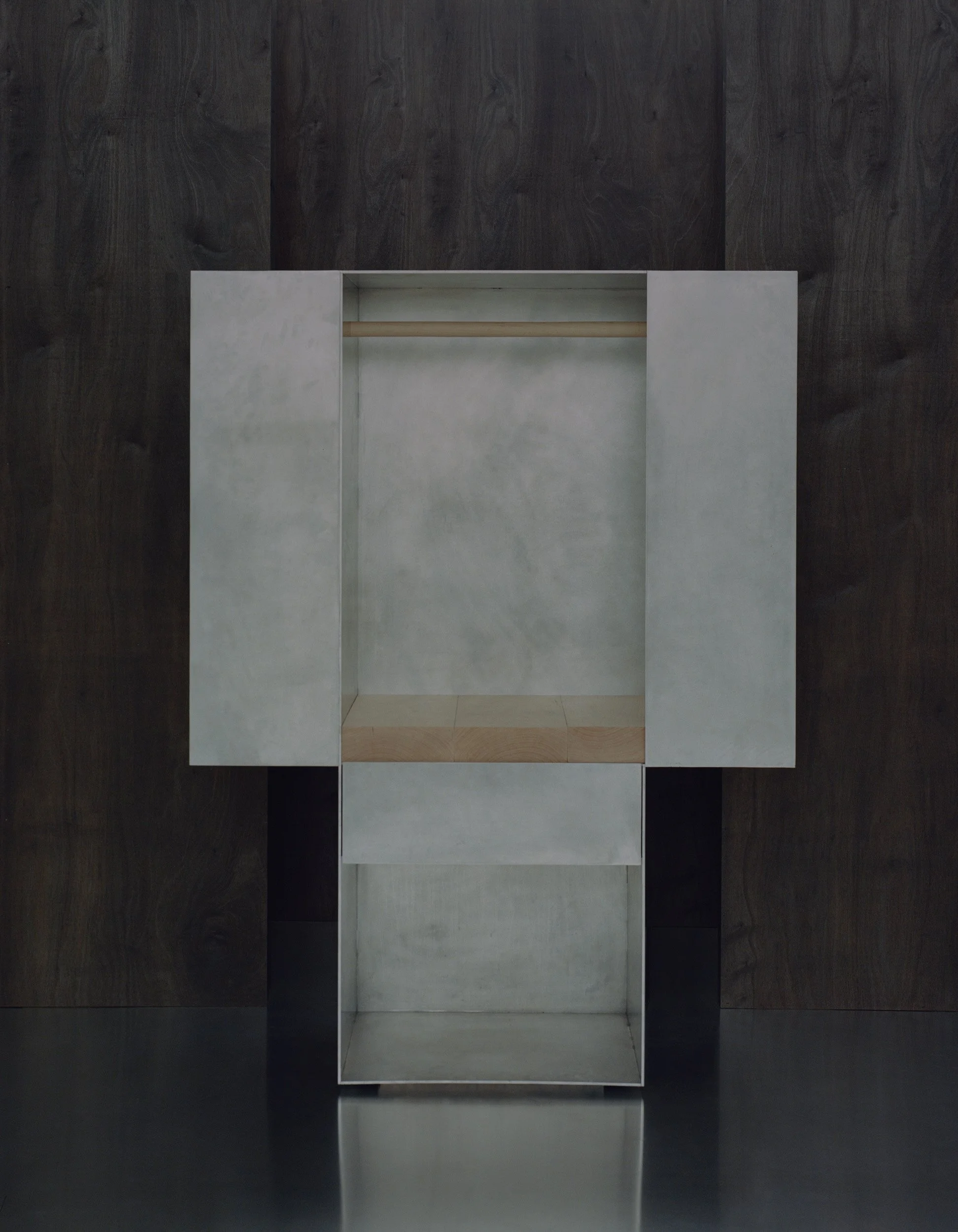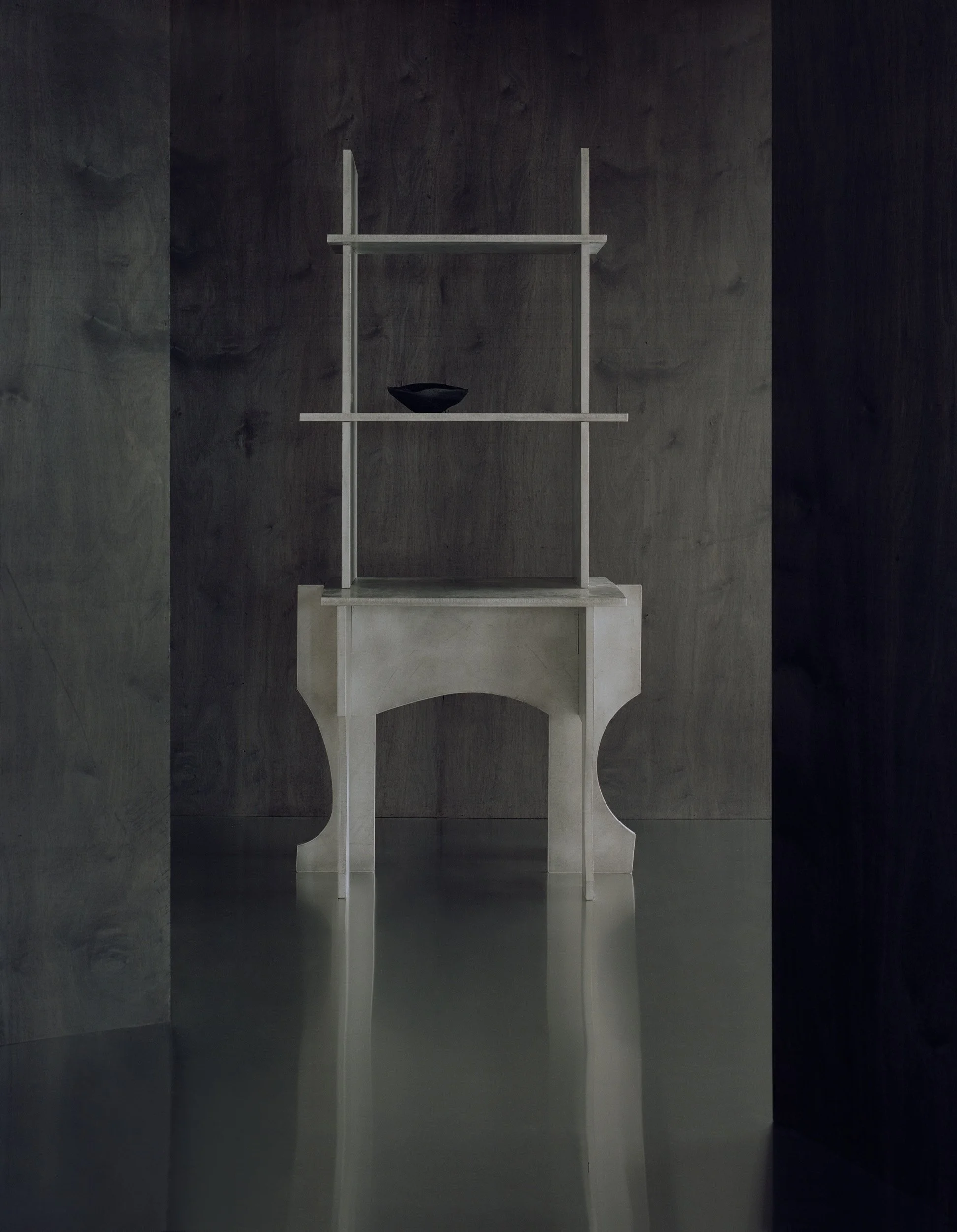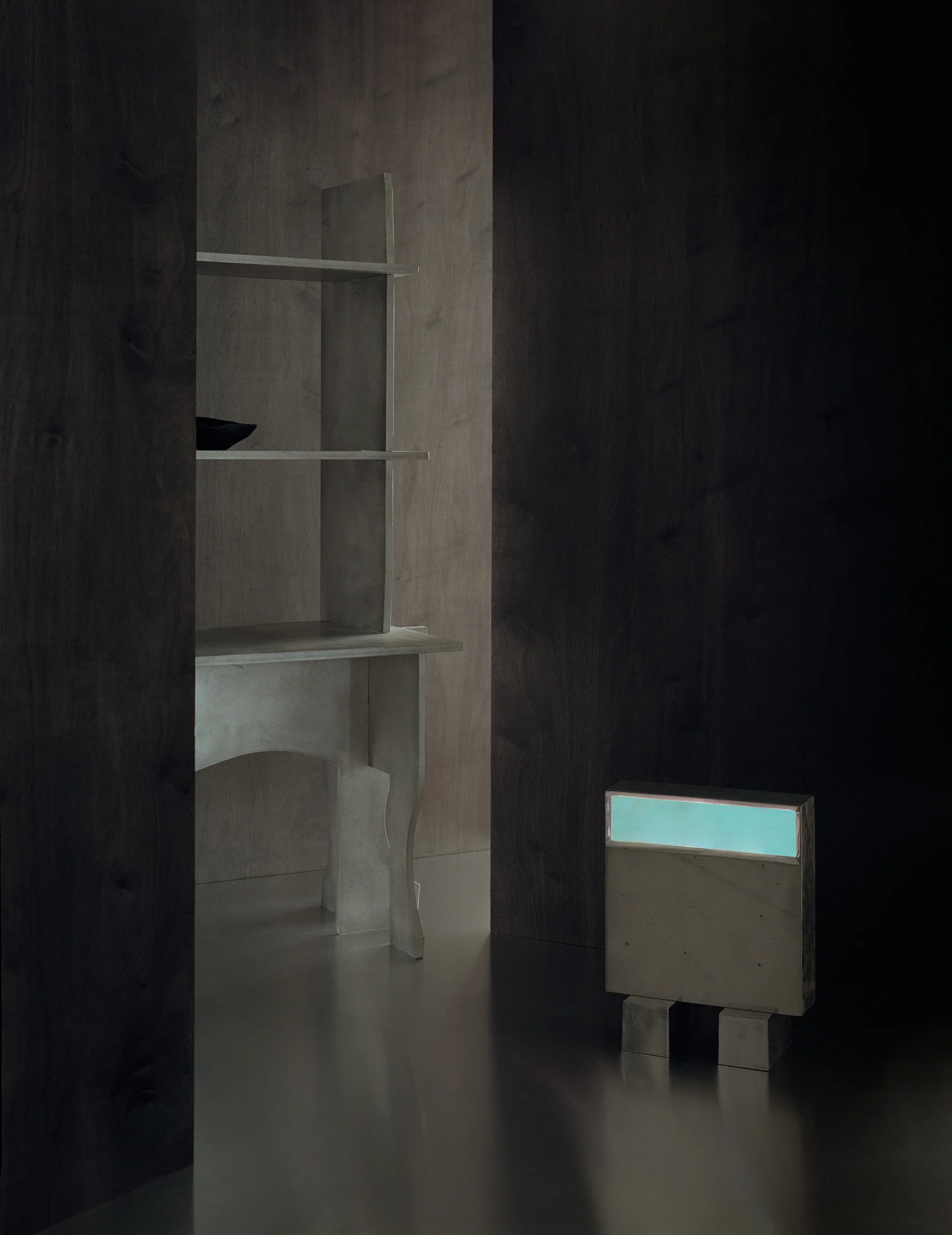 The collections photographed here harken back to the 1980s – its era's design catalogs characterized by a sense of dystopian futurism – and reference the foundational architectural and aesthetic movements of minimalism and brutalism.