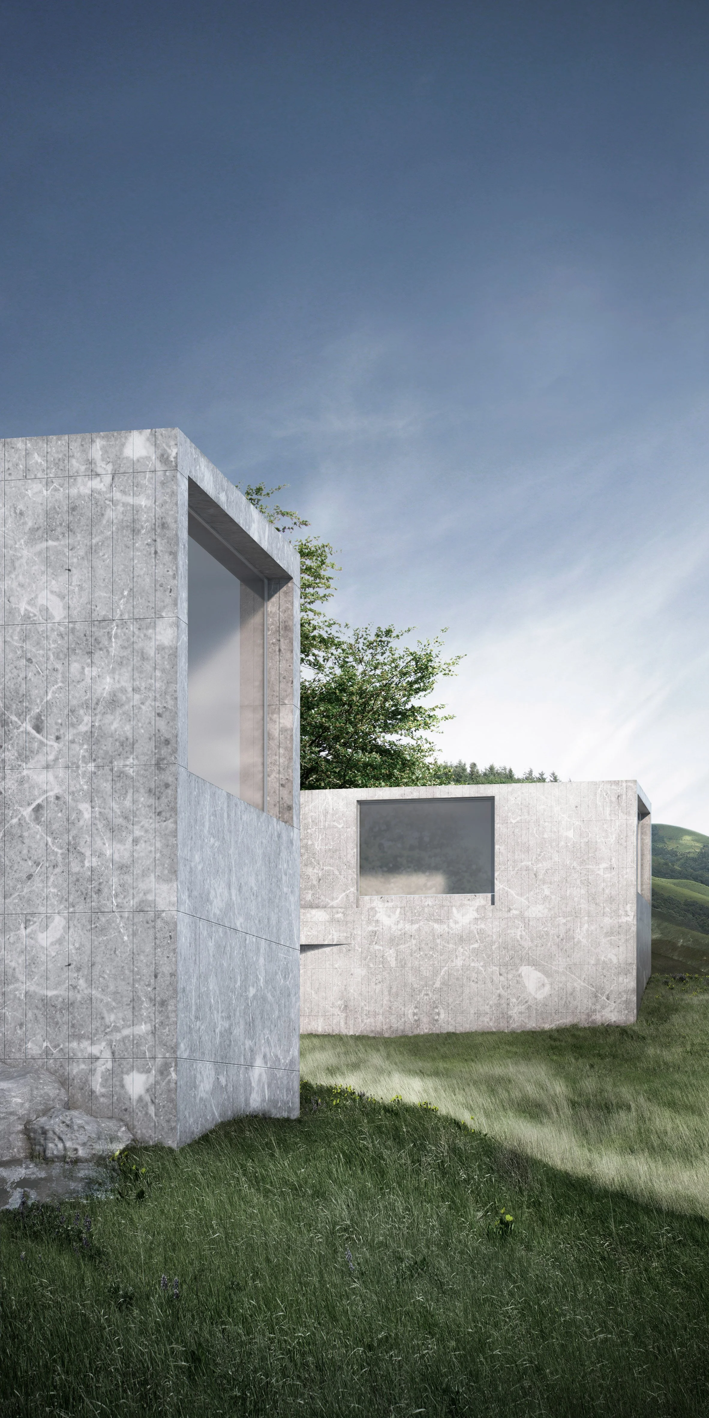 The project consists of a house with a large surface area, almost like a small village that seeks to reduce its presence in the natural environment away from white architectures from vernacular populations and approaching karstic phenomena, such as caves and gorges that have been carved by rain and time in shades of grey stones that exist in the area. The project is understood as a geological landscape surrounded by cork and holm oak as happens in the nearby cave of the two doors.