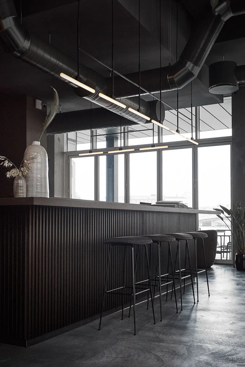 With a humble and intimate approach to the interior, Nærvær is formed by a casual atmosphere with small spaces and niches for guests to enjoy. With an interior design defined by an array of stone, wood and metal, the materials are all natural and have deliberately been altered in order to create dark and industrial surfaces that matches the mood of the place. This conscious focus on tactility brings a warm, material richness to the interior that naturally compliments the raw concrete walls and industrial framework of the space.